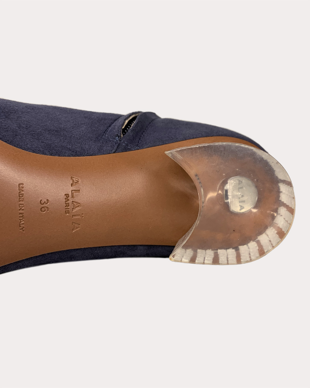 - 굽: Alaïa의 꽃무늬 패턴이 새겨진 투명 굽