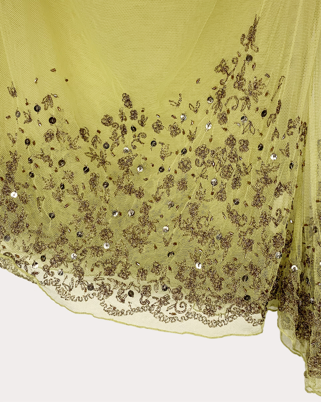 - 앞,뒤판 하단에는 금색의 sequin 및 자수 장식