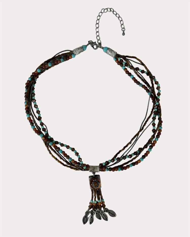 - 다양한 종류의 비즈와 메탈 비즈를 함께 엮은 목걸이