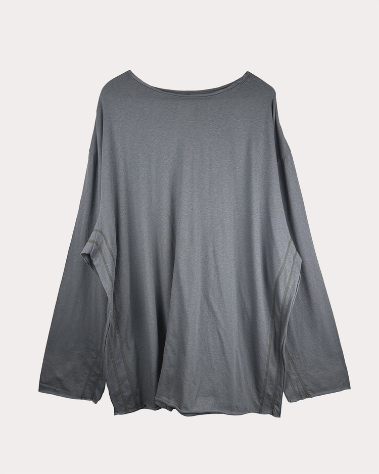 - XL 사이즈의 티셔츠 패턴 위에 스티치를 한 줄씩 놓음으로 사이즈가 줄어드는 디자인