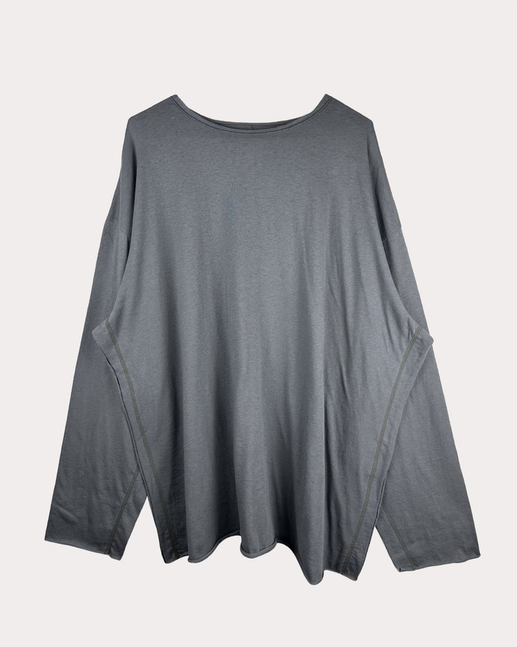 - XL 사이즈의 티셔츠 패턴 위에 스티치를 한 줄씩 놓음으로 사이즈가 줄어드는 디자인