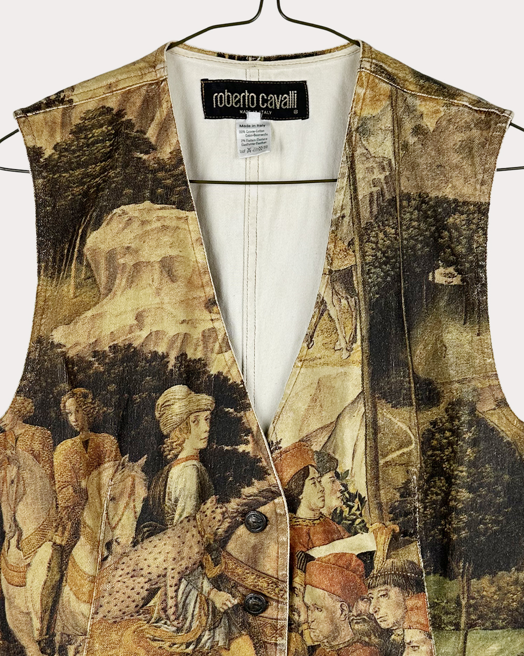 - 1990년대~2000년대 초 이탈리아를 대표하던 디자이너 브랜드인 Roberto Cavalli의 1994 F/W 제품으로 패션과 르네상스 예술의 결합을 보여주는 대표적인 사례