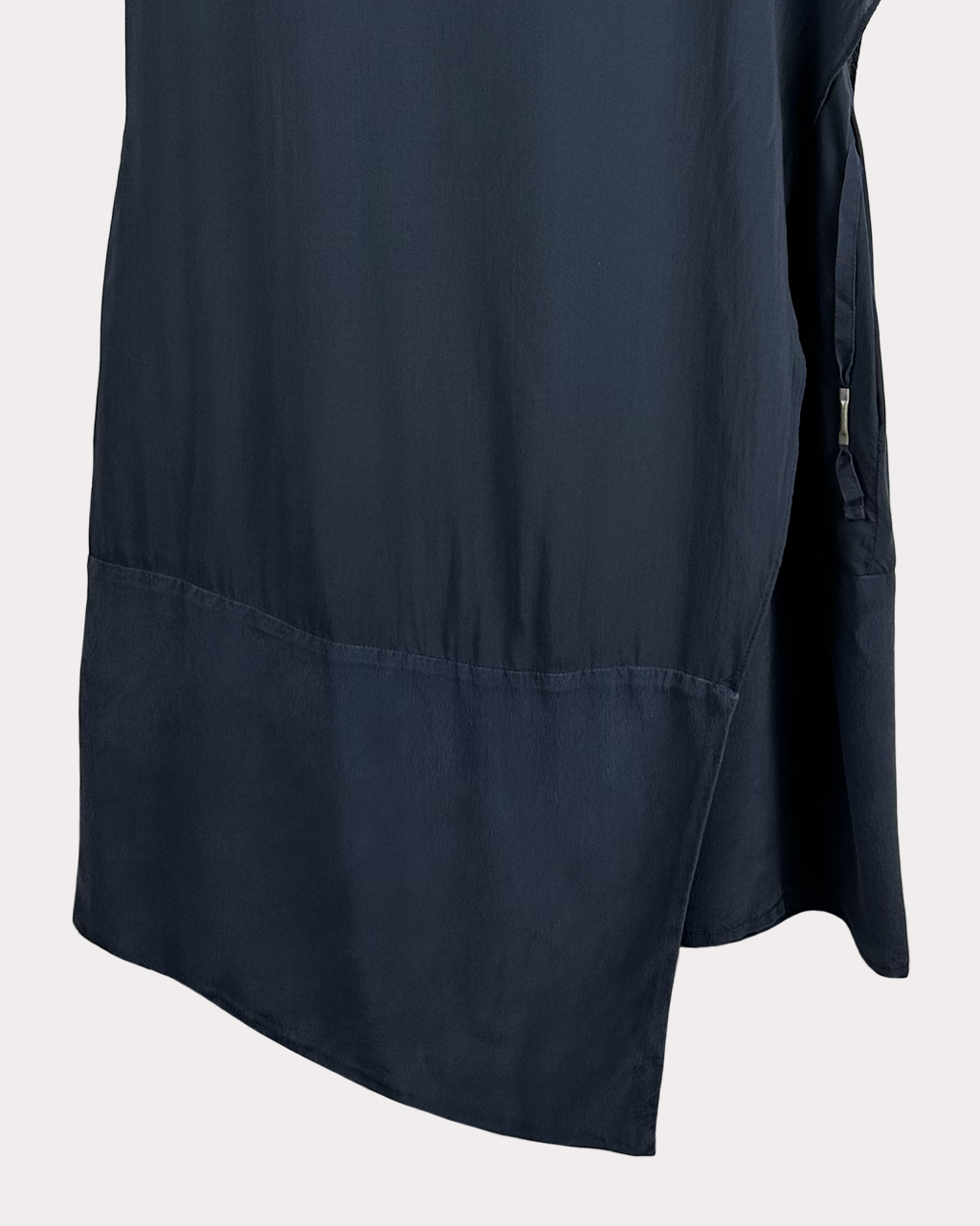 - 착용 시 왼쪽 옆선에만 주머니가 있으며 끈 장식이 부착