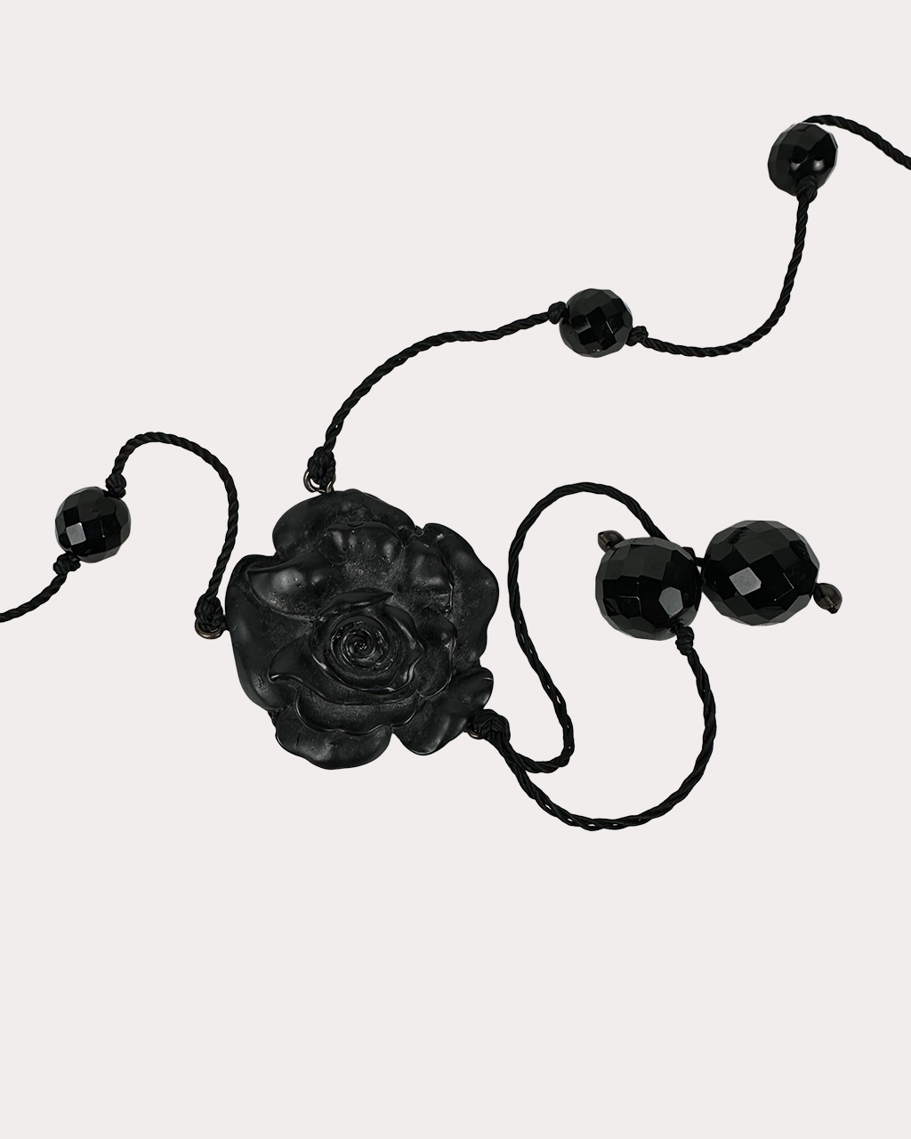 - 흑단(黑檀) 재질의 장미 펜던트와 크리스탈 구슬이 엮인 목걸이
